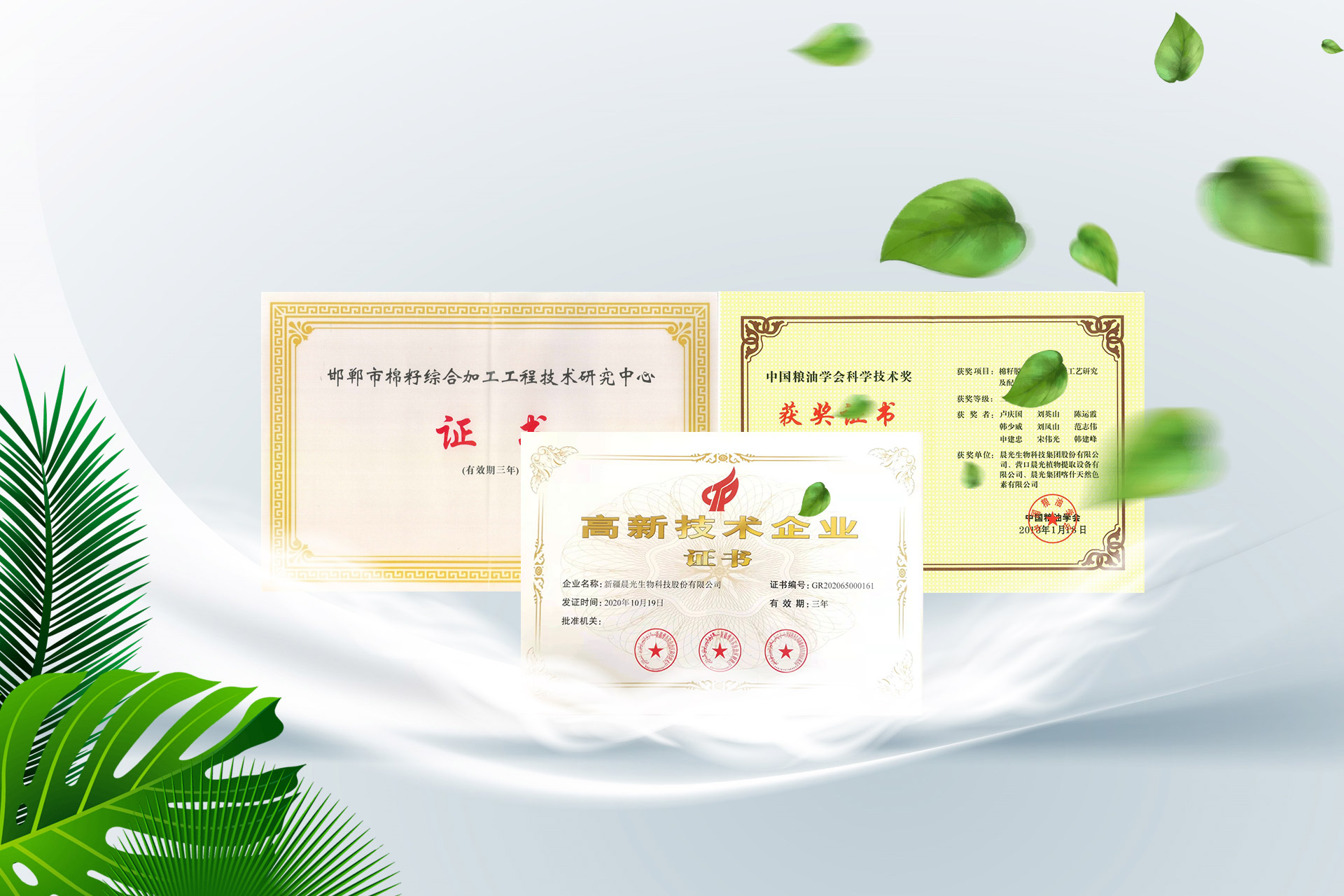 自主知識(shí)產(chǎn)權(quán)的專利93項(xiàng),其中發(fā)明專利18項(xiàng),實(shí)用新型專利75項(xiàng)。參與制定了國(guó)家供銷合作行業(yè)標(biāo)準(zhǔn)GH/T 1262—2019(棉籽殼)、國(guó)家農(nóng)業(yè)行業(yè)標(biāo)準(zhǔn)(棉籽品質(zhì)快速測(cè)定 近紅外法)